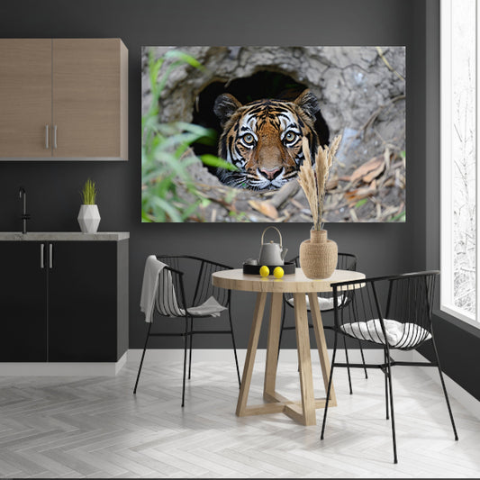 Tijger Loert vanuit Schuilplaats in Natuur canvas
