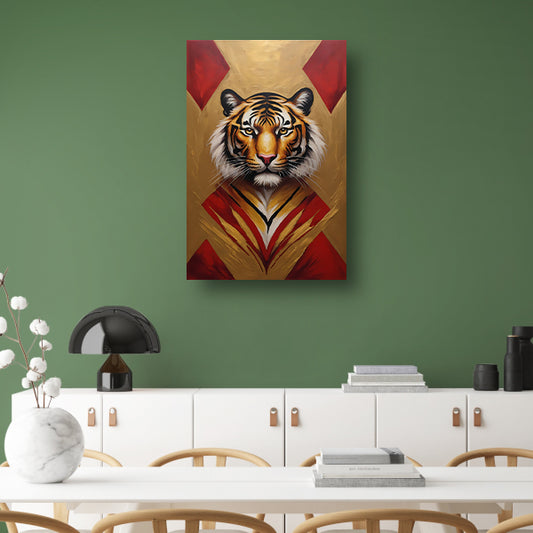 Oranjerood Schilderij van een Majestueuze Tijger poster
