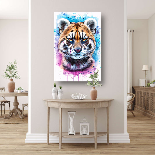 Kleurrijk tijgerportret in aquarelstijl canvas met baklijst