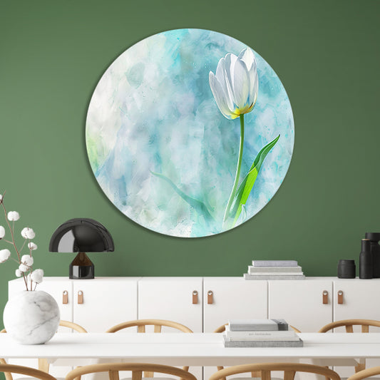 Witte tulp in abstracte expressieve olieverf aluminium muurcirkel