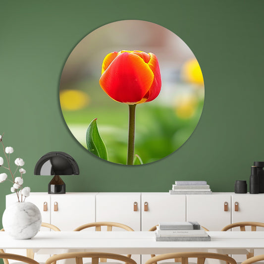 Kleurrijke tulp in volle bloei schilderij aluminium muurcirkel