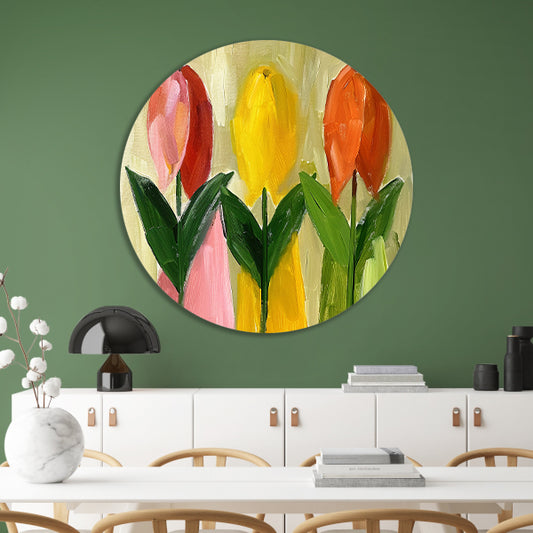 Impressionistisch schilderij van kleurrijke tulpen forex muurcirkel