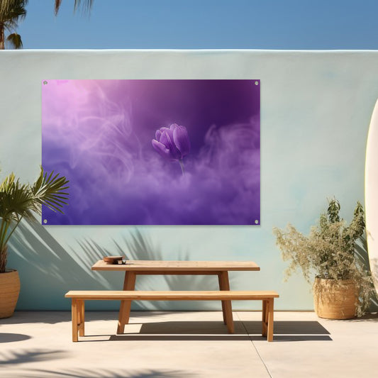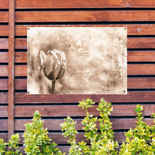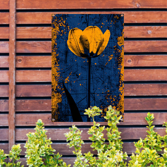 Abstracte tulp tegen dynamische blauwe achtergrond tuinposter