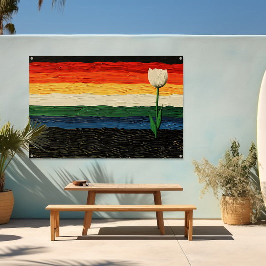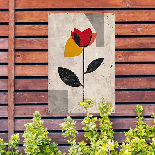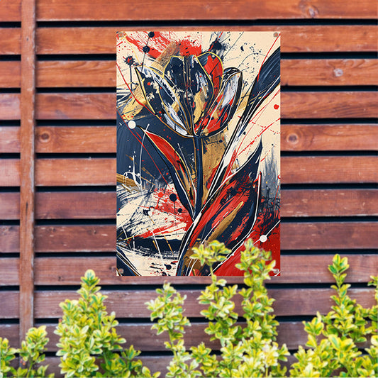 Kleurrijke abstracte tulp met golvende lijnen tuinposter