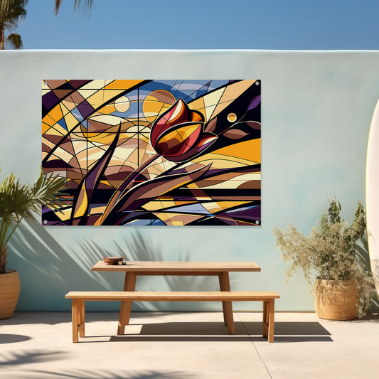 Kleurrijke abstracte tulpenkunst in kubistische stijl tuinposter