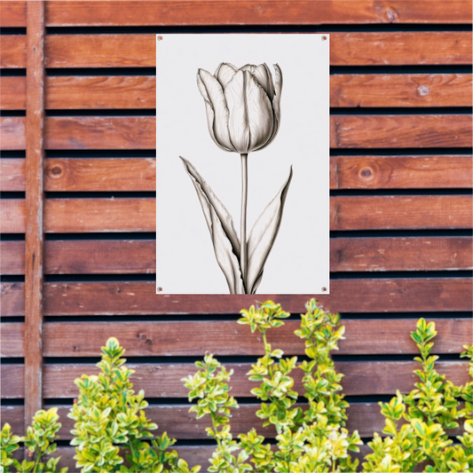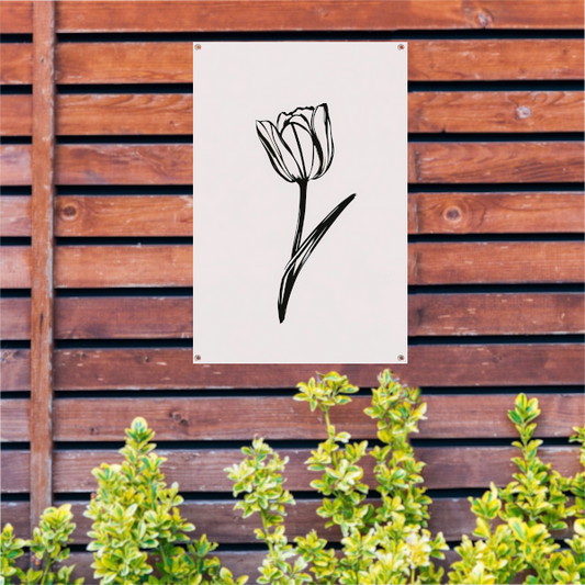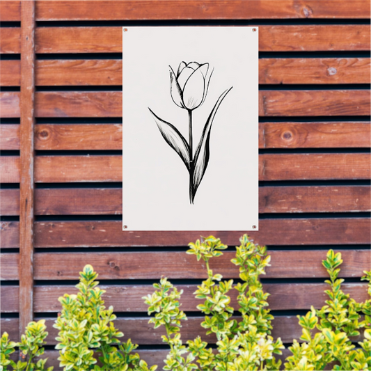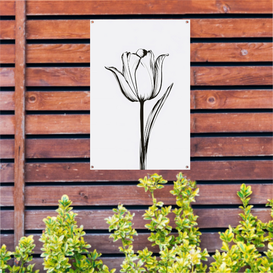 Minimalistische tulp in zwart-wit lijnenspel tuinposter
