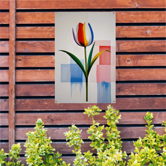 Abstracte Kleurrijke Tulp op Moderne Achtergrond tuinposter