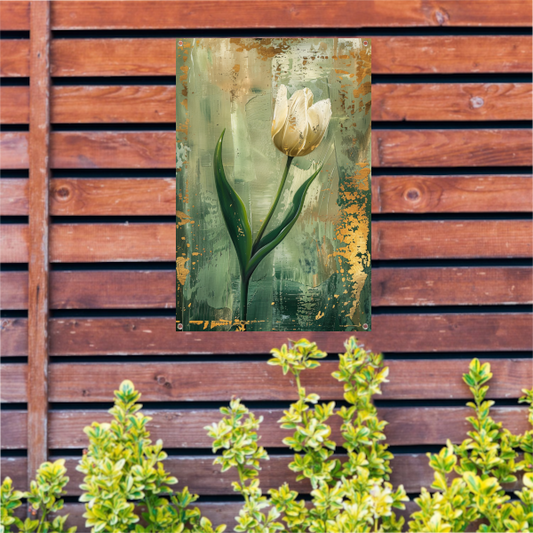 Witte tulp in abstracte expressieve olieverf tuinposter