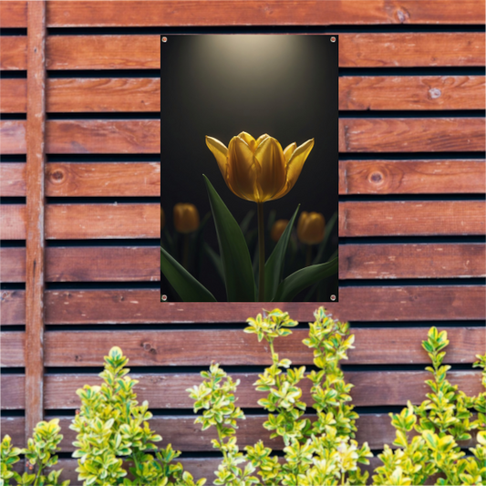 Gouden Tulip Abstractie op Monochrome Achtergrond tuinposter