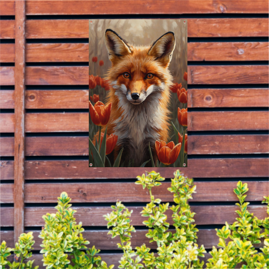 Herfst Vos tussen de Bloeiende Tulpen tuinposter
