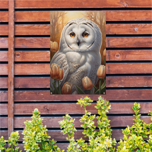Witte Uil en Herfsttulpen Portret tuinposter