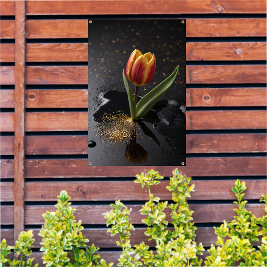 Rode en Gele Tulp met Gouden Glitters tuinposter