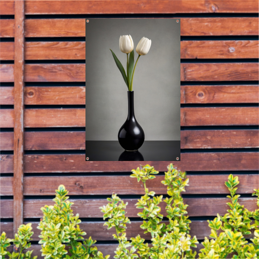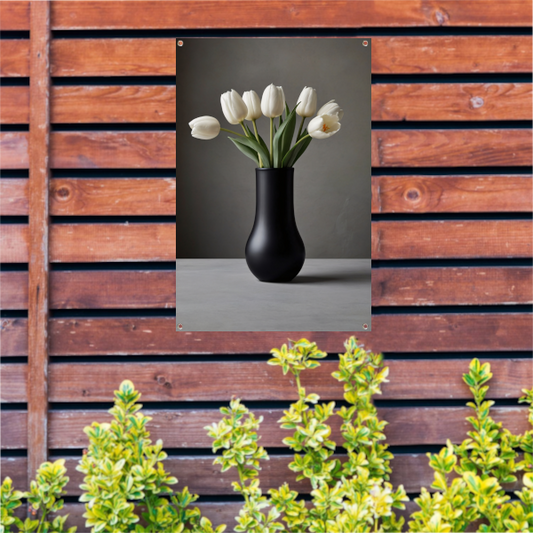 Minimalistische Witte Tulpen in Zwarte Vaas tuinposter
