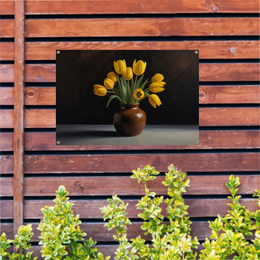 Gele Tulpen in Harmonie met Bruine Vaas tuinposter