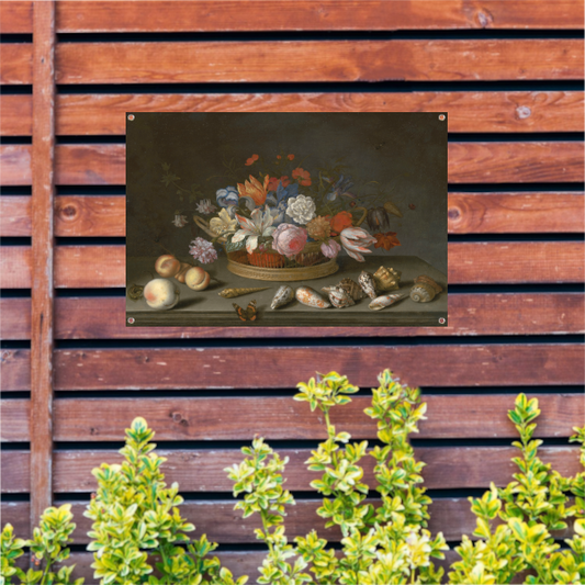 Tulpen, rozen en andere bloemen in een mand - Balthasar van der Ast tuinposter