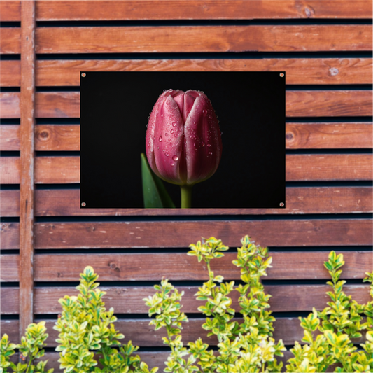 Roze Tulp met Dauw op Zwarte Achtergrond tuinposter
