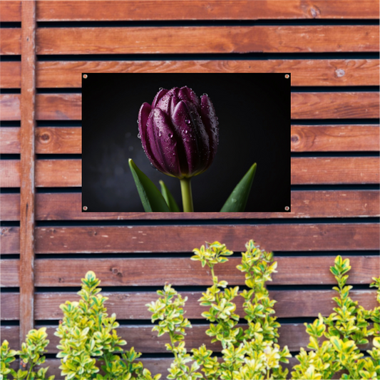 Paarse Tulp in Ochtenddauw Close-up tuinposter