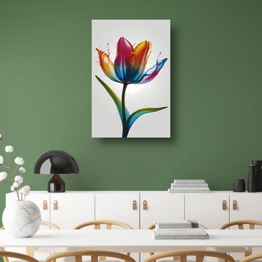 Moderne Kleurrijke Tulp in Vloeibare Stijl canvas met baklijst