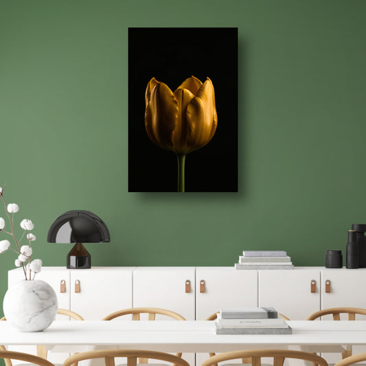 Elegante Gouden Tulp tegen Diepzwarte Achtergrond canvas
