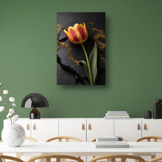Rode en Gele Tulp met Gouden Glitters acrylglas