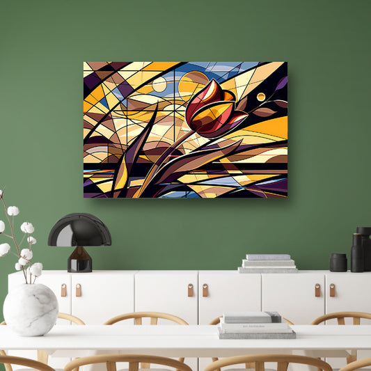 Kleurrijke abstracte tulpenkunst in kubistische stijl canvas met baklijst