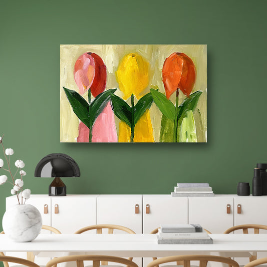 Abstracte tulpen kunst met levendige kleuren canvas met baklijst