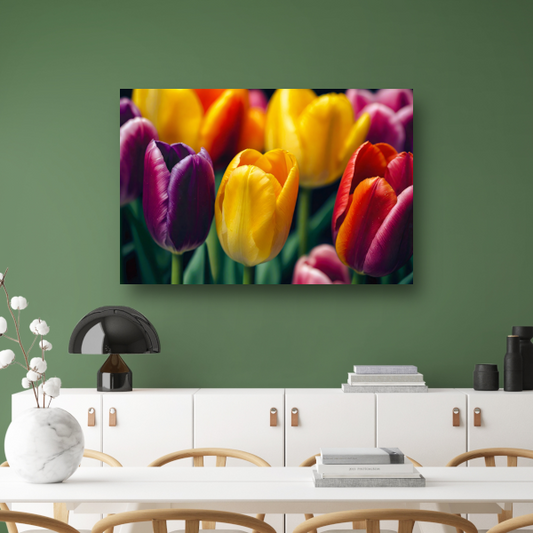 Vernieuwende Lente met Kleurrijke Tulpen canvas met baklijst
