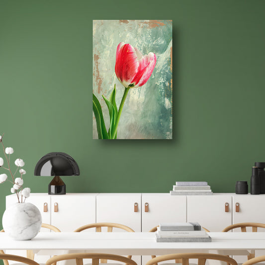 Realistische schildering van een mooie tulp canvas met baklijst
