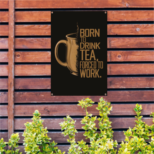 Geboren om thee te drinken, gedwongen om te werken tuinposter