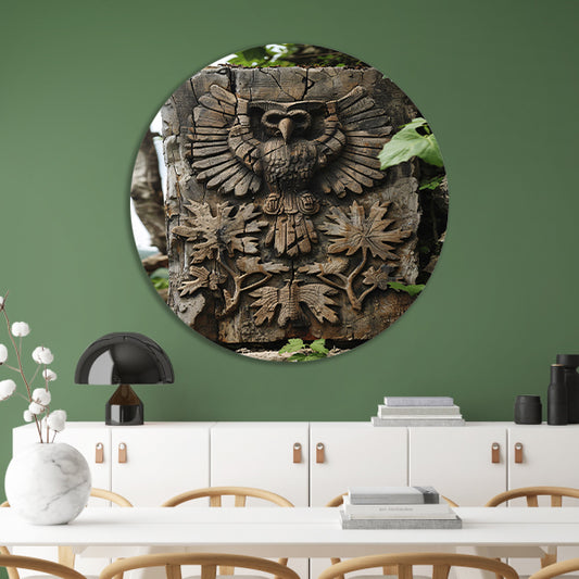 Houtsnijwerk van Uil met Planten aluminium muurcirkel