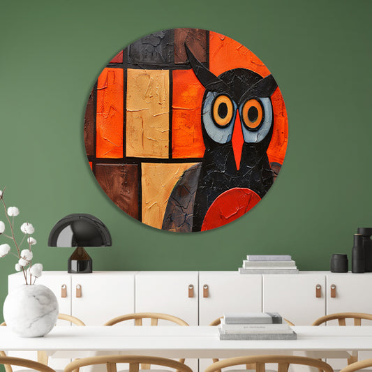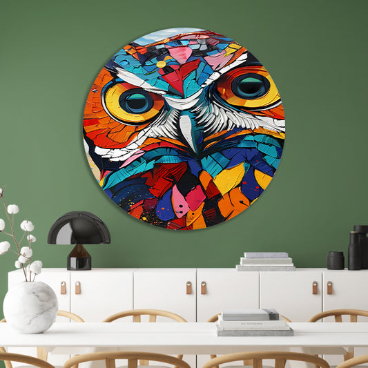 Kleurrijke abstracte uil schilderij forex muurcirkel