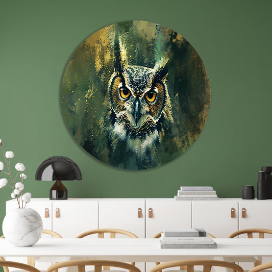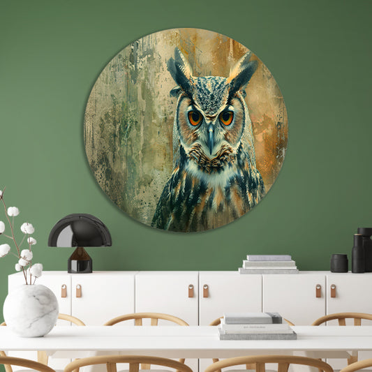 Mysterieuze uil portret in rustieke kleuren forex muurcirkel