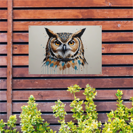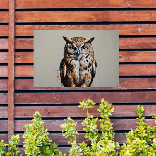 Intens Oogcontact met een Majestueuze Uil tuinposter