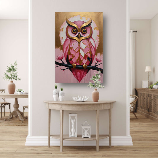 Uil met Gouden Achtergrond en Roze Veren canvas