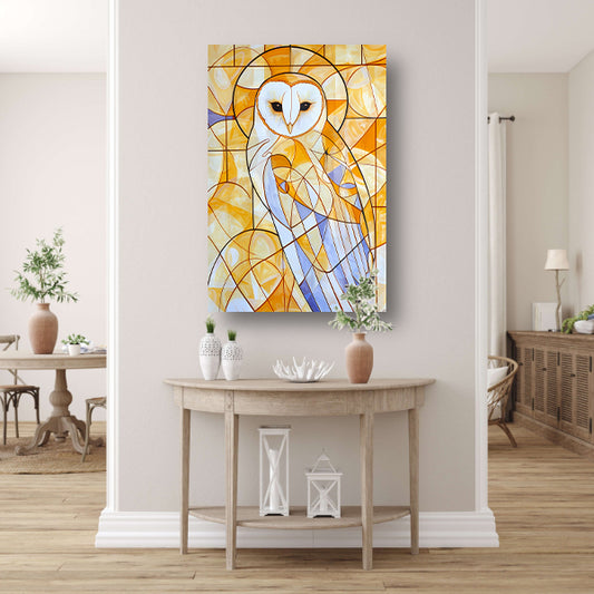 Kleurrijke uil met dynamische achtergrond acrylglas