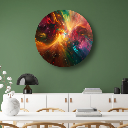 Wervelende Dans van Levendige Kleuren aluminium muurcirkel