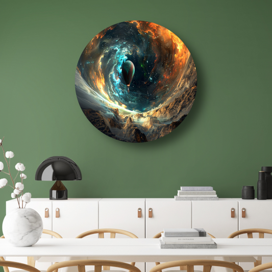 Abstract Neon Hert in Kosmisch Universum aluminium muurcirkel