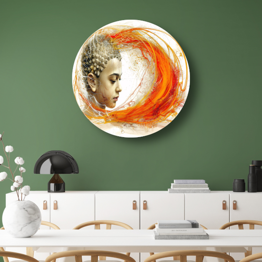 Kosmische lijnkunst portret van vrouw aluminium muurcirkel