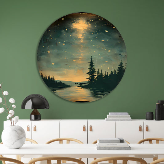 Abstract landschap met maan en sterren aluminium muurcirkel