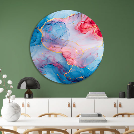 Abstracte Symfonie in Blauw en Roze aluminium muurcirkel