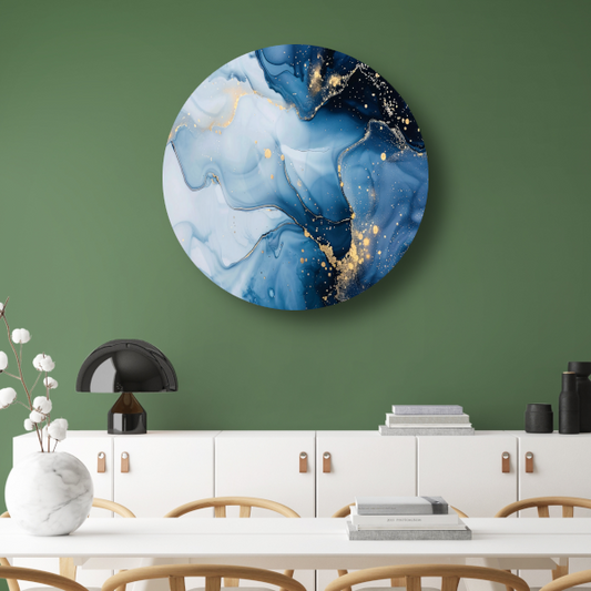 Luxe Blauw en Gouden Marmer Abstractie forex muurcirkel