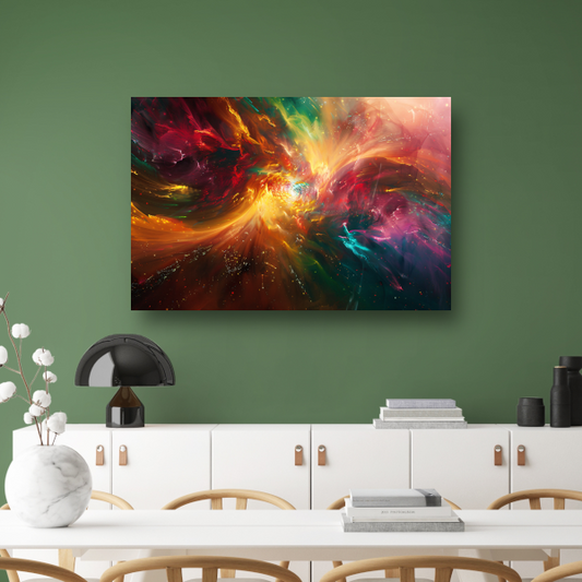 Abstracte zonsondergang met kleurrijk landschap canvas met baklijst