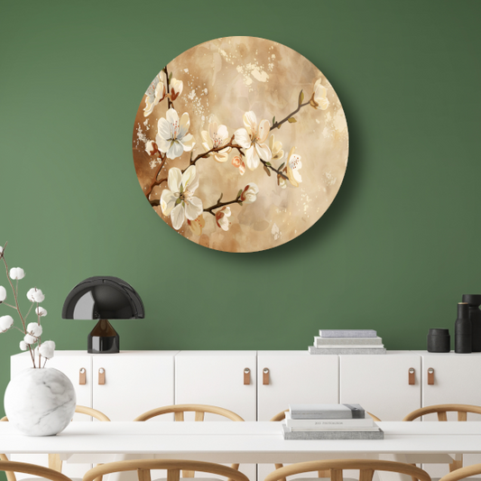 Sierlijke Bloesemtakken tegen Sepia Achtergrond forex muurcirkel