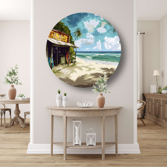 Impressionistisch strandhuis bij zonsondergang forex muurcirkel
