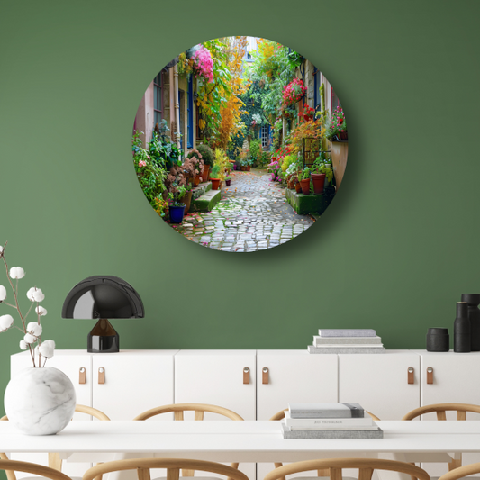 Impressionistische Straat met Bloeiende Planten forex muurcirkel