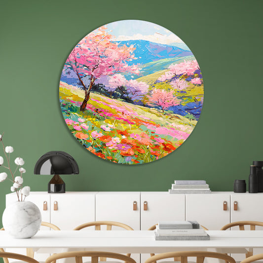 Prachtig impressionistisch bloemenveld in de lente forex muurcirkel