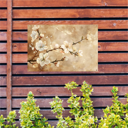 Sierlijke Bloesemtakken tegen Sepia Achtergrond tuinposter