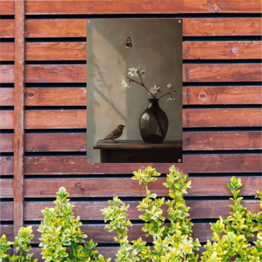 Stilleven met Vogel en Witte Bloesem tuinposter