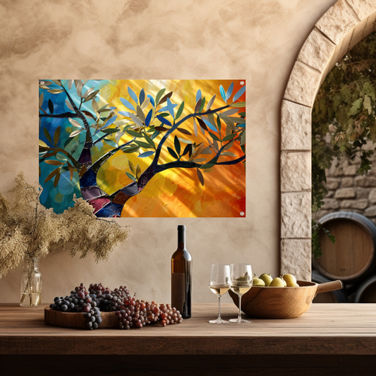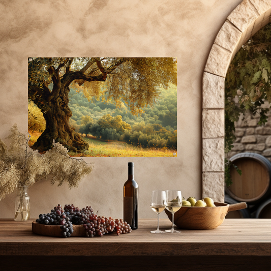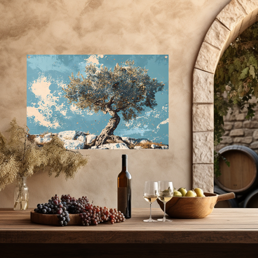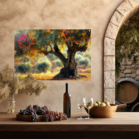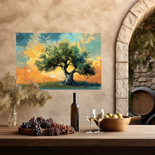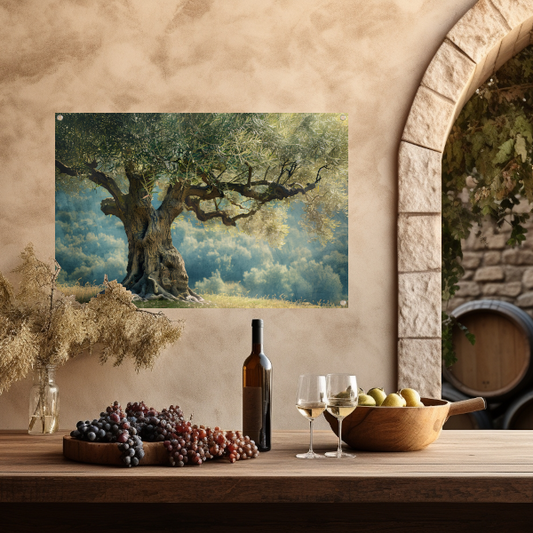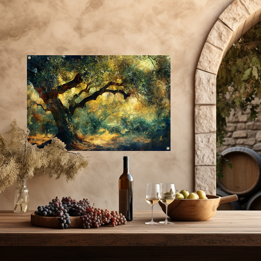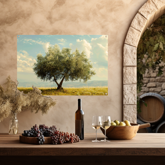 Olijfboom in Provençaalse ochtendzon tuinposter