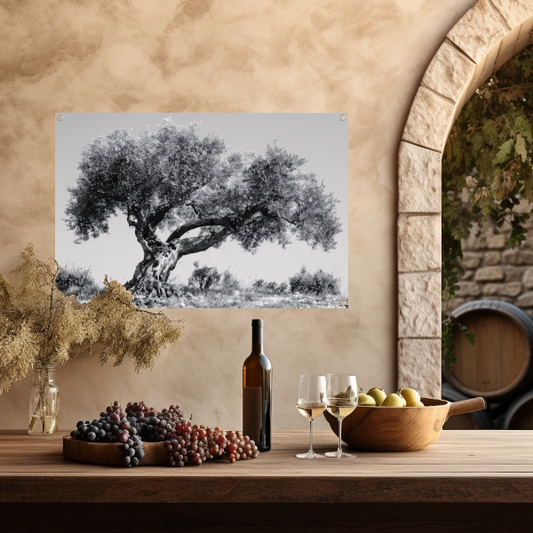 Klassieke Olijfboom in Zwart-Wit tuinposter